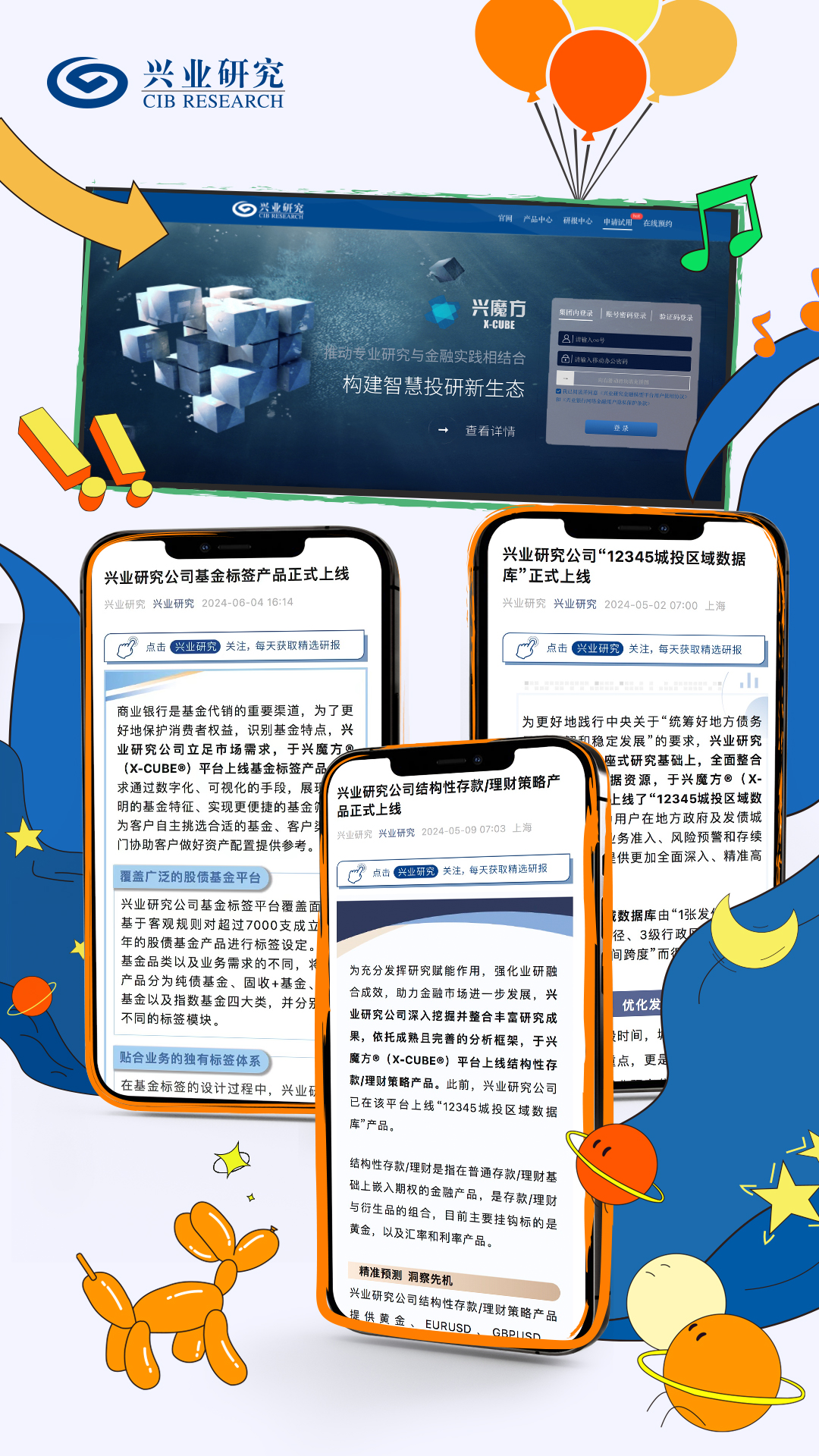 兴业研究公司深入挖掘并整合丰富研究成果,于兴魔方®(X-CUBE®)平台上线“12345”城投区域数据库、结构性存款/理财策略、基金标签、企业烽火台等多个创新产品,进一步推动数字化转型,提升服务质效。